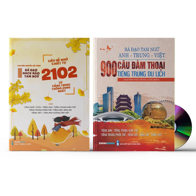 1. Combo: Siêu dễ nhớ chiết tự 2102 từ tiếng Trung thông dụng nhất + 900 Câu đàm thoại tiếng Trung du lịch + DVD quà ebook