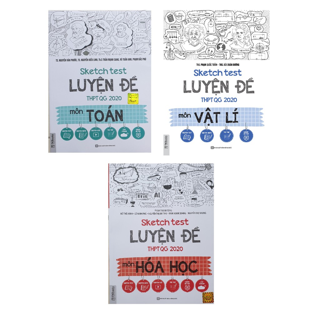1. Combo Sketch Test luyện đề THPTQG 2020 môn Toán + Vật Lý + Hóa Học + Tặng Bookmark và Bút ebook