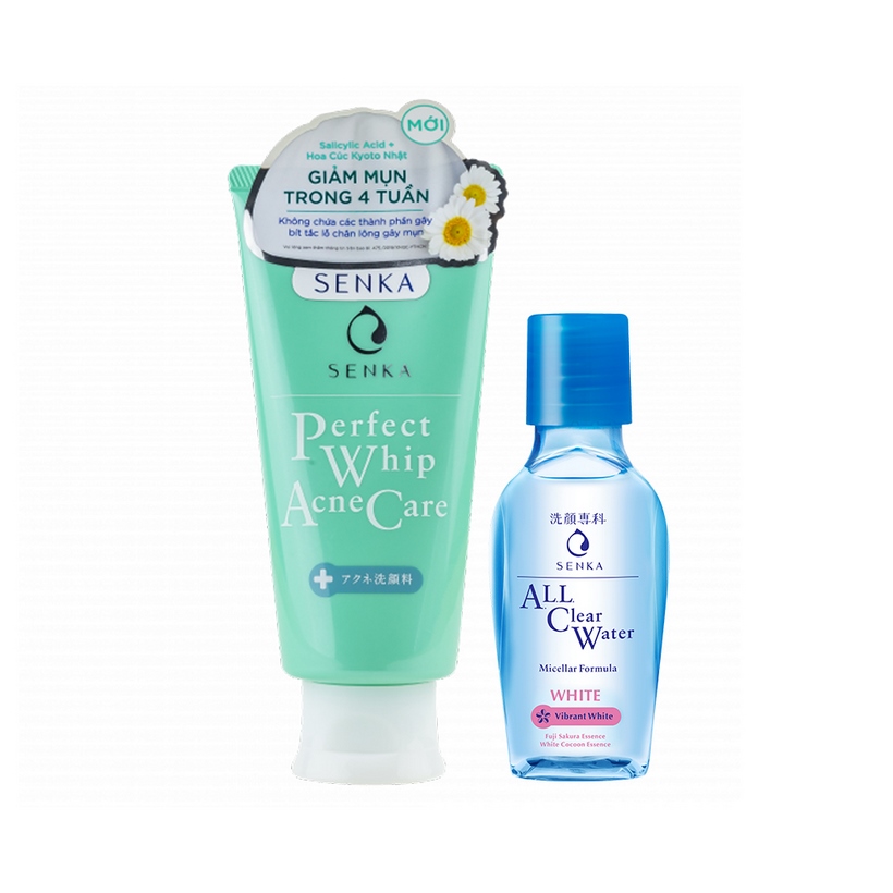 Bộ sản phẩm Combo Sữa rửa mặt dành cho da mụn Senka Perfect Whip Acne Care 100g + Nước tẩy trang Senka All Clear White 70ml, Thương hiệu Senka Xuất xứ thương hiệu Nhật Bản Xuất xứ Nhật Bản Hạn sử dụng 3 năm kể từ ngày sản xuất SKU 9162710934431.