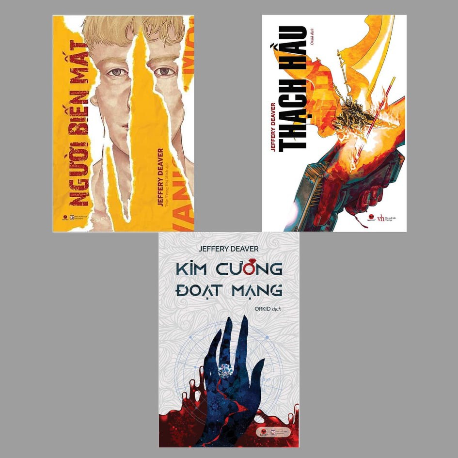 Combo 3 cuốn bao gồm: 1. Thạch Hầu – Tác giả: Jeffery Deaver – Nhà xuất bản: Văn Học – Số trang: 558 – Ngày xuất bản:2019 – Giới thiệu: Một con thuyền chở những người vượt biên tiến vào hải phận nước Mỹ. Một cuộc truy quét của cơ quan hành pháp Hoa Kỳ khiến đám buôn người trở nên manh động. Quỷ – tên “xà thủ” khét tiếng tàn bạo quyết định ra tay với đám “khách hàng” của mình. Nhiều người đã chết…Nhiều người tiếp tục bị săn đuổi qua những phố Tàu ở New York. Nơi nào Quỷ đi qua, nơi đó sẽ đổ máu. Thời gian càng trôi đi, mạng sống của những nạn nhân đang bị săn đuổi càng bị đe dọa. Những nỗ lực dành sự sống của “nhân chứng” trên con tàu vượt biên càng vô vọng. Lincoln Rhymes và đồng đội của mình sẽ phải làm gì để chống lại Quỷ, kẻ thù giảo hoạt và tàn nhẫn đến từ phương Đông, kẻ có khả năng biến hóa, trà trộn và thao túng người khác? Jeffery Deaver đã đưa kiến thức về văn hóa, truyền thống dân gian và lịch sử Trung quốc vào cuốn tiểu thuyết Thạch Hầu, đồng thời sử dụng bị kịch về nạn buôn lậu người và nhập cư bất hợp pháp đang nổi cộm. Một cốt truyện xuất sắc với nhiều cú ngoặt hơn bạn tưởng. 2. Người Biến Mất – Tác giả: Jeffery Deaver – Nhà xuất bản: Lao Động – Số trang: 576 – Ngày xuất bản:2019 – Giới thiệu: Mọi chuyện bắt đầu ở trường Âm nhạc và Nghệ thuật biểu diễn Manhattan, thành phố New York. Kẻ sát nhân đã biến mất khỏi hiện trường tội ác và tự khóa mình trong một căn phòng kín. Chỉ trong vài phút, cảnh sát đã nhanh chóng bao vây gã. Khi tiếng la hét dừng lại, theo sau là tiếng súng, cảnh sát lao vào trong phòng. Căn phòng trống trơn. Lincoln Rhyme và Amelia Sachs được mời tham gia điều tra vụ án và truy tìm tay ảo thuật gia mà họ gọi là “Gã phù thủy”. Khi mà những vụ giết người tàn độc xảy ra ngày càng nhiều hơn và tần suất ngày càng dày đặc, Rhyme và Sachs phải hành động quyết liệt để ngăn chặn cuộc trả thù đẫm máu, có thể làm “biến mất” tất cả… 3. Kim Cương Đoạt Mạng – Tác giả: Jeffery Deaver – Nhà xuất bản: Lao Động – Số trang: 572 – Ngày xuất bản: 2020 – Giới thiệu: Buổi sáng cuối tuần tĩnh lặng ở khu phố 47, quận Kim cương bỗng chốc bị khuấy động bởi tin tức về vụ thảm sát ba mạng người tại một tiệm trang sức. Nạn nhân là một nghệ nhân cắt kim cương có tiếng cùng một đôi uyên ương đang sắp sửa trao nhau chiếc nhẫn thề hẹn trăm năm. Số kim cương trị giá cả nửa triệu đô-la trong cửa tiệm vẫn còn nguyên vẹn trong khi các nạn nhân bị tra tấn cho đến chết. Đây chắc chắn không phải một vụ án cướp của giết người thông thường. Vậy mục đích thực sự của tên sát nhân là gì? Chưa dừng lại ở đó, các vụ tấn công liên tiếp xảy ra trong thành phố mà đối tượng hướng đến luôn là các cặp đôi vừa mới đính hôn. Tên sát nhân muốn lấy đi mạng sống của các nạn nhân trong những khoảnh khắc quý giá nhất của họ – sau cuộc gặp của họ với bên tổ chức đám cưới, lúc họ lựa chọn nhẫn đính hôn hay sau khi cô dâu vừa mặc thử chiếc váy cưới hoàn hảo cho cái ngày mà có thể sẽ không bao giờ tới. Tên sát nhân vẫn âm thầm, lạnh lùng và kín kẽ đi trên con đường của riêng hắn, cẩn thận xóa bỏ mọi dấu vết và giấu giếm chấp niệm trả thù bệnh hoạn của mình trong khi đầu mối mơ hồ duy nhất mà thanh tra Rhyme cùng cộng sự của anh có được là cậu trai đang học việc tại tiệm trang sức. Tuy nhiên, đối tượng này lại luôn thoát khỏi tầm tay của họ, kể cả lúc tưởng như đã sa lưới mai phục tới nơi…