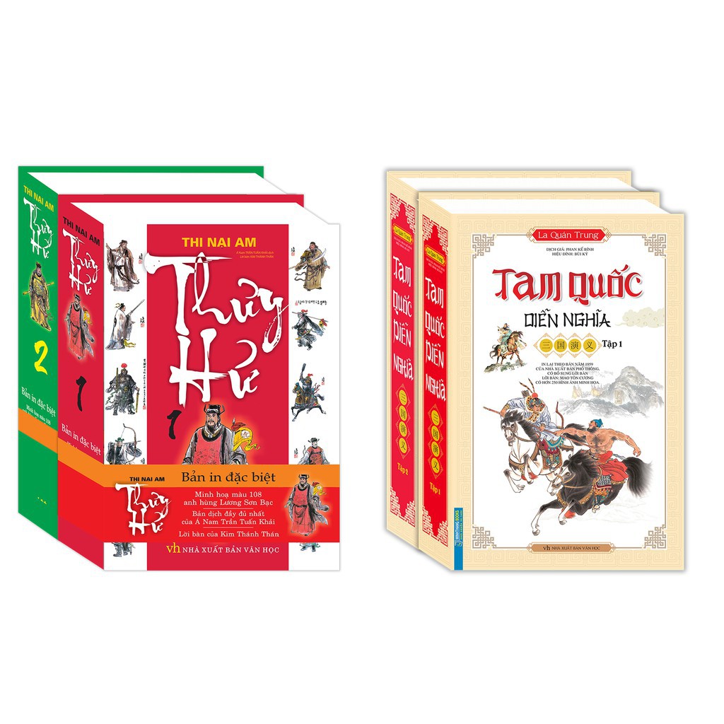 1) Thuỷ hử ( Bìa cứng) Tác giả: Thi Nại Am Giá bìa: 275.000 ₫ Phát hành: Minh Thắng Năm xuất bản: 2018 (mã sách: 8935236412759) Dịch giả: Á Nam Trần Tuấn Khải – Lời bàn: Kim Thánh Thán Dạng bìa: bìa cứng Số trang: 1712 trang Kích thước: 14,5 x 20,5 cm ——————–Giới thiệu sách——————- Thủy Hử ( Bộ 2 tập ) Thủy Hử (nghĩa đen là “bến nước”) là một trong Tứ đại danh tác của văn học cổ điển Trung Quốc. Đây là pho tiểu thuyết được ưa thích và lưu truyền rộng rãi trong lịch sử, khắc họa thành công hình tượng những anh hùng hảo hán võ nghệ cao cường, giàu lòng vị tha, xả thân vì nghĩa. Cốt truyện là sự hình thành và những chiến tích của cuộc khởi nghĩa nông dân chống triều đình nhà Tống, do Tống Giang lãnh đạo. Thủy Hử phản ánh thực trạng trong xã hội phong kiến muôn đời: “quan bức thì dân phản”. Và thời thế đó đã tất yếu đã sinh ra những “Anh hùng thời loạn” – những người có khả năng dựng ngọn cờ “Thế thiên hành đạo” để quy tụ lực lượng quần chúng lao khổ nhất tề đứng lên chống cường quyền áp bức, đó chính là 108 Anh hùng Lương Sơn Bạc. Bên cạnh việc xây dựng rất thành công hàng loạt nhân vật anh hùng hảo hán, Thủy Hử hấp dẫn người đọc còn ở cách kể chuyện gần gũi với truyện kể dân gian. Giáo sư Lương Duy Thứ đã nhận xét: “…Văn chương của Thủy Hử không “dệt gấm thêu hoa” như Tây Sương ký, không “nhả ngọc phun châu” như Hồng Lâu Mộng, mà là “nhạc trỗi chuông ngân”, hùng hồn, dồn dập… Tác phẩm Thủy Hử giữ được tính sống động của nhân vật trong ngôn ngữ, gần gũi với đời sống hằng ngày, trong lối hành văn ít trang sức tô điểm.” Ở nước ta, bản dịch Thủy Hử của Á Nam Trần Tuấn Khải được nhiều người yêu thích bởi văn phong hàn lâm, trau chuốt. Á Nam Trần Tuấn Khải đã dịch từ bản Thủy Hử gồm 70 hồi chính truyện, 140 câu đề mục do Kim Thánh Thán – một nhà phê bình nổi tiếng đời Thanh soạn lại. Đây là bản Thủy Hử phổ biến nhất, giữ được tinh hoa cốt truyện, văn chương được gọt dũa, nhuận sắc. 2) Tam quốc diễn nghĩa (trọn bộ 2 tập – bìa cứng) Tác giả: La Quán Trung Giá bìa: 350.000 ₫ NXB: NXB Văn Học Năm xuất bản: 2020 (Mã sách: 8935236418423) Dịch giả: Phan Kế Bính – Hiệu đính: Bùi Kỷ Dạng bìa: bìa mềm Số trang: 1740 (trọn bộ 2 tập) Kích thước: 16 x 24 cm ————Giới thiệu sách———— TAM QUỐC DIỄN NGHĨA (Trọn bộ 2 tập) “Tam Quốc Diễn Nghĩa”, bộ tiểu thuyết lịch sử chương hồi đầu tiên của văn học Trung Quốc, do tác giả la Quán Trung đời Minh sáng tác. Với bối cảnh lịch sử trong gần 100 năm kể từ cuộc khởi nghĩa Khăn Vàng cuối đời Đông Hán cho tới khi nhà Tây Tấn thống nhất Trung Hoa, bộ tiểu thuyết này thuật lại câu truyện hưng suy của ba nhà Ngụy, Thục, Ngô. Bộ sáng tác tái hiện lịch sử của một thời kỳ chiến loạn, quốc gia phân tranh, xã hội biến động, người dân loạn lạc, phản ánh tính chất tàn khốc của một thời kỳ trong lịch sử Trung Hoa, thường được biết đến dưới tên gọi ” thời Tam Quốc”. Tác giả La Quán Trung, với bút pháp ảo diệu, đã xây dựng nên các hình tượng nhân vật
