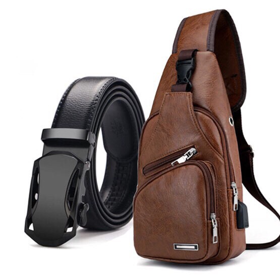 Bộ sản phẩm: Combo Túi Da Đeo Chéo + Thắt Lưng Da Nam.