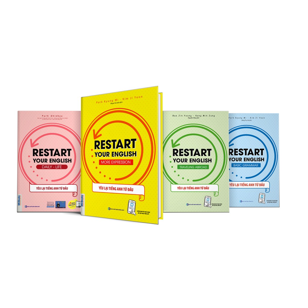 Combo Yêu Lại Tiếng Anh Từ Đầu – Dành Cho Người Học Mất Gốc – Học kèm App Online ebook pdf review dowload tác giả Nhiều tác giả, Danh Mục Sách Ngoại Ngữ Thương hiệu Nhiều tác giả Ngôn ngữ Tiếng Việt Nhập khẩu/ trong nước Trong nước Kho hàng 1009 . 1.Restart your English – More Expression Công ty phát hành: MCBooks Tác giả: Nhiều tác giả Nhà xuất bản: NXB Hồng Đức Năm xuất bản: 2020 Số trang: 234 Giới thiệu sách: Tiếng Anh ngày nay không còn là ngôn ngữ của một hay một vài quốc gia. Tiếng Anh ngày nay là một ngôn ngữ toàn cầu! Chúng ta vẫn thường nhìn thấy những biển hiệu tiếng Anh khi đi dạo phố, những đồ dùng hàng ngày với hướng dẫn sử dụng bằng tiếng Anh, những câu nói vu vơ với bạn bè thi thoảng được chêm thêm 1 từ tiếng Anh,… Nhưng để nói tiếng Anh trôi chảy thì không phải điều mà ai cũng làm được. Restart Your English – Cẩm nang cho những người mất gốc cần học tiếng Anh Đây là series sách dành cho những người mất gốc muốn bắt đầu lại quá trình học tiếng Anh. Thông qua các kiến thức tiếng Anh thực tế, người học có thể liên hệ và sử dụng tiếng Anh trong cuộc sống hàng ngày một cách dễ dàng. Đặc biệt, bộ sách được thiết kế với nhiều hình ảnh minh họa sinh động giúp tăng cường hứng thú và khả năng ghi nhớ kiến thức. 2. Restart your English – Traveling Abroad Công ty phát hành: MCBooks Tác giả: Nhiều tác giả Nhà xuất bản: NXB Hồng Đức Năm xuất bản: 2020 Số trang: 262 Giới thiệu sách: Thật tuyệt vời khi chúng ta có thể sắp xếp thời gian và một khoản tiền kha khá để đi du lịch nước ngoài. Tuy nhiên, khi xuất ngoại, chúng ta lại thấy có vô vàn những vấn đề đang tồn tại. Chẳng biết thủ tục xuất nhập cảnh có gì khác không nhỉ? Thủ tục ở sân bay như thế nào? Đặt phòng khách sạn và đi ăn thì phải nói ra sao?… Những điều đó khiến chúng ta cảm thấy vô cùng bỡ ngỡ và ảnh hưởng đến không khí hào hứng của chuyến đi. Vậy khi đi du lịch nước ngoài chúng ta cần phải chuẩn bị những gì? Cũng như giấy tờ tùy thân, việc trang bị trước cho mình những kiến thức và tiếng Anh khi đi du lịch nước ngoài là điều không thể thiếu. 3. Restart Your English – Basic Grammar Công ty phát hành MCBOOKS Tác giả Nhiều tác giả Nhà xuất bản Hồng Đức Năm xuất bản 2020 Số trang 232 Giới thiệu sách Cuốn sách Restart Your English – Basic Grammar giúp bạn: Tổng hợp và phân tích những cấu trúc ngữ pháp tiếng Anh thực sự thông dụng trong cuộc sống Hiểu và nắm chắc hệ thống phiên âm tiếng Anh quốc tế (IPA) sẽ giúp bạn phát âm tiếng Anh dễ dàng và chính xác hơn Bổ sung những từ tiếng Anh quen thuộc trong cuộc sống Luyện nghe và thực hành bài tập ngay trên điện thoại di động (App MCBooks) Nội dung cuốn sách gồm có những phần sau: Những điều cần biết Trong phần này chúng ta sẽ khám phá những điểm khác biệt giữa tiếng Việt với tiếng Anh và những điều cơ bản nhất mà người bắt đầu học tiếng Anh nhất định phải học. 4.Restart Your English – Daily Life ây là một bộ sách đặc biệt không thể thiếu cho người mất gốc, mới bắt đầu, bận, lười học tiếng Anh! Cuốn sách giúp bạn: Nắm được ít nhất 600 từ vựng và 100 mẫu câu giao tiếp trong thời gian ngắn. Nắm được những kiến thức ngữ pháp tiếng anh tinh gọn nhất. Phát triền kỹ năng Nghe – Phản xạ tiếng Anh mức độ căn bản. Giao tiếp thành thạo với người nước ngoài trong cuộc sống hàng ngày. Công ty phát hành:MCBooks Tác Giả: Park Shinkyu Năm Xuất Bản :2020 Nhà Xuất bản:Hồng Đức Số Trang: 284