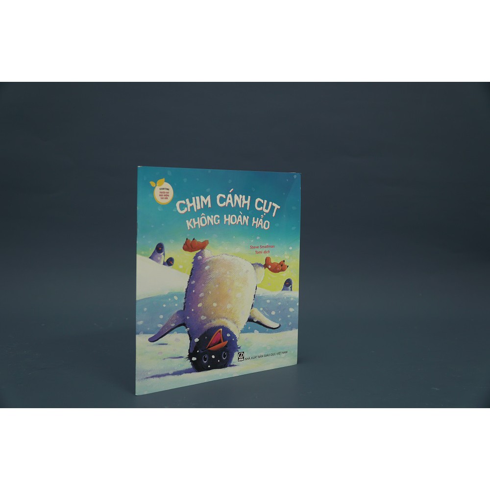 Chim cánh cụt không hoàn hảo Tác giả: Steve Smallman Người dịch: Tomi Số trang: 24 trang Định dạng: Bìa mềm Công ty phát hành: ADC Năm xuất bản: 2019 Giới thiệu tác phẩm: Câu chuyện kể về bạn chim cánh cụt Percy luôn có những sở thích và hành động không giống những người bạn chim cánh cụt khác. Trong khi mọi người ăn uống nhỏ nhẹ thì cậu lại tung hứng thức ăn, rồi khi các bạn khác bơi lội khéo léo nhẹ nhàng thì Percy lại ngụm lặn và vỗ cánh phành phạch…. Cậu bị cho là một chú chim cánh cụt không hoàn hảo nhưng Percy không hề buồn mà sống rất lạc quan, vui vẻ. Những hành động của cậu ban đầu khiến cho những người bạn khác cảm thấy khó chịu và xa lánh, không chơi với cậu. Cho đến khi Percy thực sự bỏ đi, những người bạn mới chợt nhận ra cuộc sống của họ tẻ nhạt và nhàm chán khi không có Percy và cuống cuồng đi tìm cậu. Họ tìm thấy Percy buồn bã và đông cứng trong hang động, đã cùng nhau sưởi ấm cho Percy và cùng cậu trở về đàn. Lại được chơi đùa cùng bạn bè, Percy cảm thấy mới hạnh phúc và ấm áp làm sao! Hạnh phúc hơn cả là cậu nhận ra rằng mình không cần trở nên hoàn hảo giống như các con chim cánh cụt khác. Mọi người yêu quý cậu bởi cậu chính là cậu, là anh chàng chim cánh cụt Percy rất bình thường.