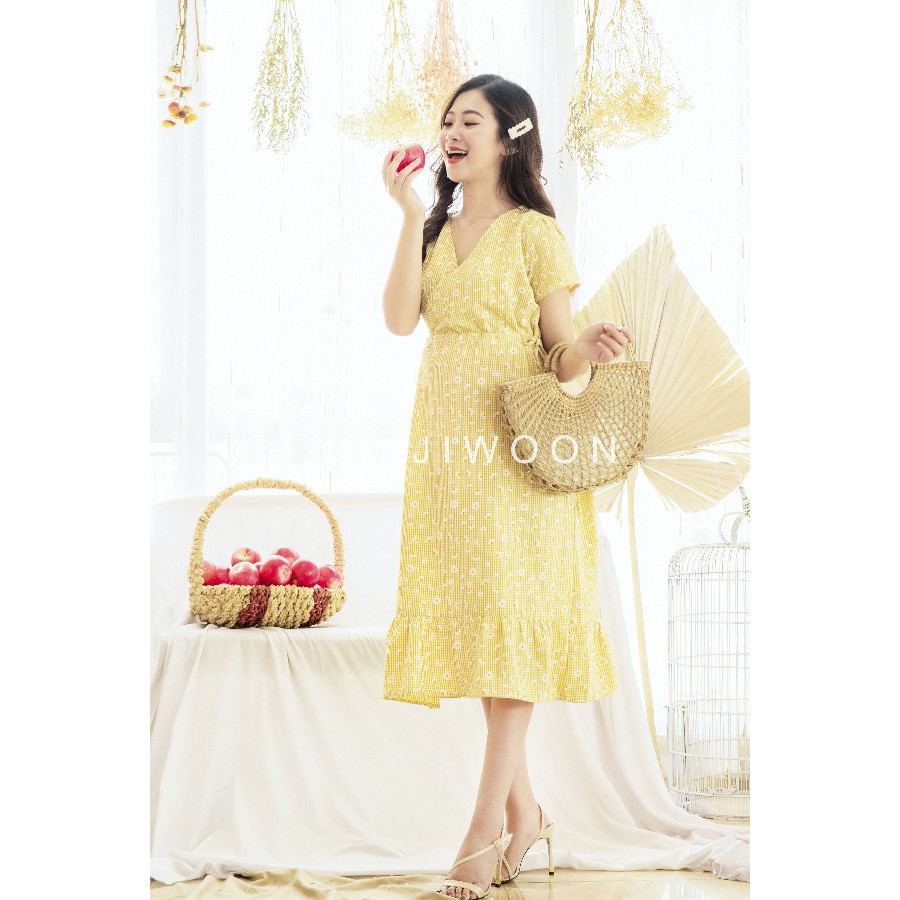 Bộ sản phẩm: Đầm bầu vải thô cotton Jiwoon DK23 VNXX thiết kế xuất Hàn.