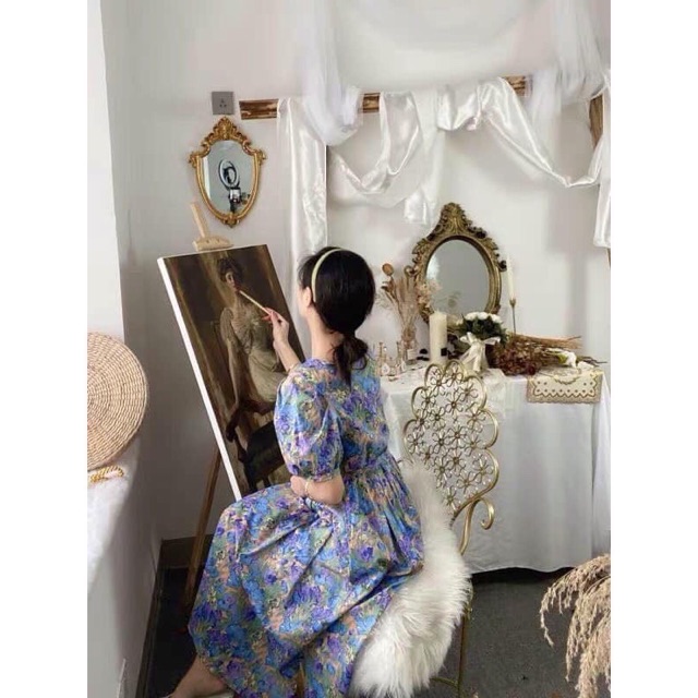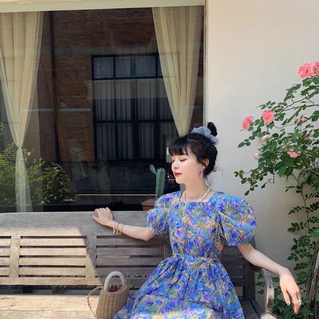 Bộ sản phẩm: Đầm hoa cổ vuông hàng thiết kế cao cấp.