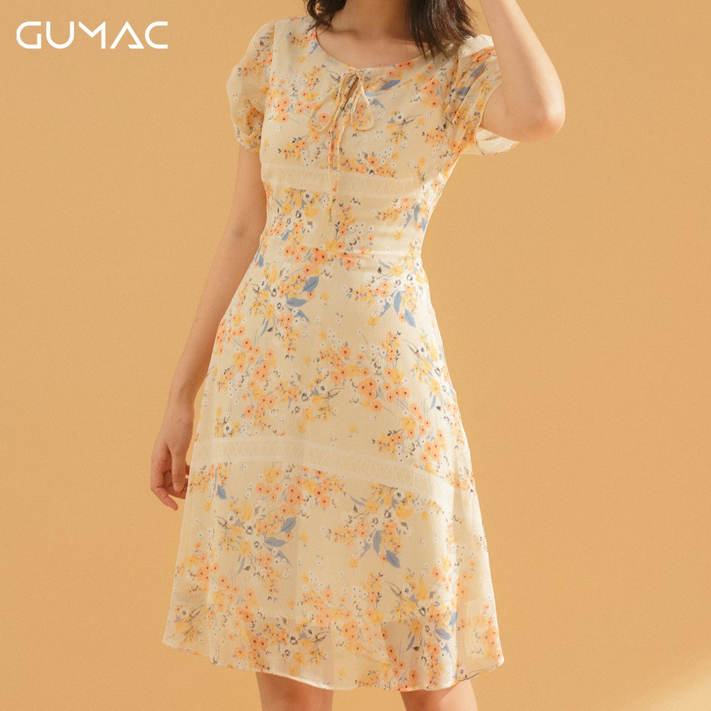 Chi tiết các thông sỗ kĩ thuật kèm hình ảnh của bộ sản phẩm Đầm hoa tay nhún chun DA744 GUMAC, quý khách xem dưới đây: