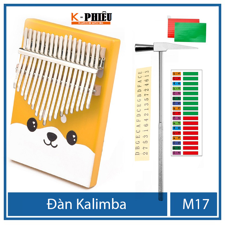 Bộ sản phẩm Đàn kalimba 17 phím MYRON-M17 cho bạn mới tập chơi tặng búa chỉnh âm , giấy dán màu, giấy dán nốt , 25 bài tab kalimba, 1 sách hướng dẫn chơi đàn kalimba Thương hiệu: K PHIÊU.