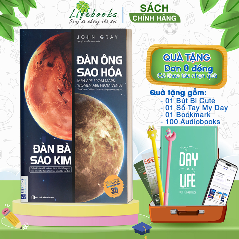 BIZBOOKS – Sách Đàn ông sao hỏa đàn bà sao kim ————————————- Thông tin sản phẩm – Công ty phát hành BIZBOOKS – Tác giả John Gray – Ngày xuất bản 2018 – Công ty phát hành: Bizbooks – Nhà xuất bản Nhà Xuất Bản Hồng Đức – Loại bìa Bìa mềm – Số trang 488 ————————————— GIỚI THIỆU SÁCH Người ta thường nói rằng đàn ông và đàn bà là “hai thái cực” hoàn toàn khác nhau, vậy nên giữa nam giới và nữ giới luôn luôn có những sự khác biệt và thậm chí là đối lập rõ rệt. Nhưng, thực ra đàn ông và đàn bà có rất nhiều điểm chung, hiểu được điều này phụ nữ sẽ bớt nặng lòng. – “Có điều gì khác biệt trong vùng não cảm xúc của đàn ông và đàn bà? – Họ có thể đọc được cảm xúc của nhau và hiểu nhau đến đâu? – Tại sao người ta thường đã phải cáu kỉnh, mệt mỏi, buồn phiền trong công việc, mà khi trở về nhà lại không tìm được sự chia sẻ của bạn đời? – Mỗi khi người phụ nữ cáu giận, liệu có phải chỉ do lỗi của đàn ông? Còn khi người đàn ông cô đơn và muốn ở một mình, vì sao người phụ nữ lại luôn nghĩ lỗi là tại họ? Tất cả những câu hỏi trên được tác giả John Gray giải thích trong cuốn sách Đàn ông sao hỏa đàn bà sao kim