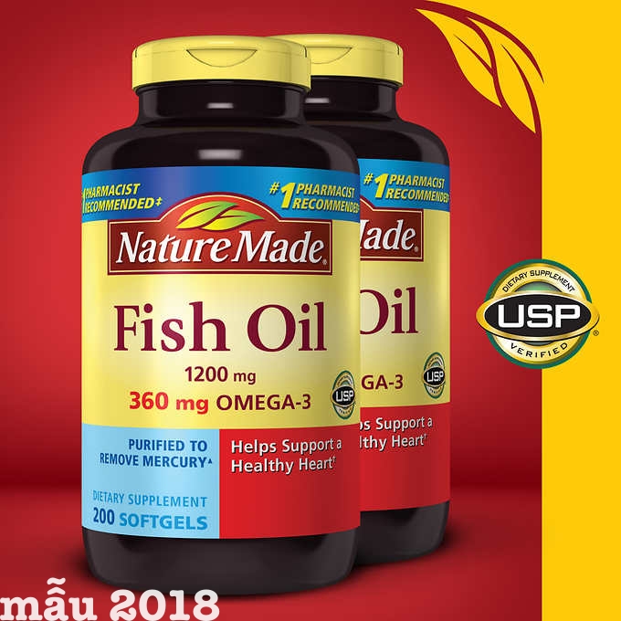 Bộ sản phẩm Dầu Cá Nature Made Fish oil 1200mg 0mega-3 200 viên – mẫu 2020 Thương hiệu: Nature Made.