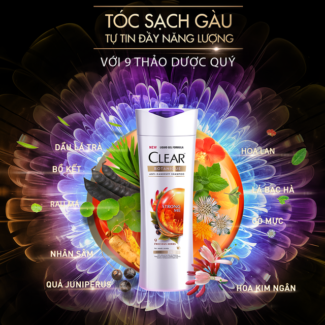 Cơ thể bạn cần được thanh lọc để trở nên khỏe mạnh, đầy sức sống, giúp bạn thể hiện bản thân tốt nhất mỗi ngày. Mái tóc & da đầu của bạn cũng thế, cũng cần được thanh sạch để mái tóc luôn đầy sức sống và ngăn những vấn đề về gàu không quay trở lại. Giới thiệu sản phẩm Clear Botanique 9 Thảo Dược Quý mới với công thức Gel đột phá lần đầu tiên xuất hiện trên thị trường, kết hợp với những nguồn thực vật quý trên thế giới đôi sức mạnh giúp sạch gàu vượt trội & cấp ẩm da đầu. Là sản phẩm thiên nhiên với tính năng đột phá dành riêng cho da đầu yếu giúp thanh sạch da đầu (1) và ngăn gàu quay lại (2), cho tóc trông bừng sức sống và khỏe đẹp tự nhiên. Sản phẩm lành tính với 0% parabens & chất tạo màu. 1. Dầu gội sạch gàu số 1 Việt Nam. 2. Lần đầu tiên xuất hiện công thức Gel đột phá với diện mạo hoàn toàn mới. 2X sức mạnh: Sạch gàu vượt trội, cấp ẩm cho da đầu. 3. Công thức với nhiều thành phần có nguồn gốc tự nhiên, giúp thanh sạch da đầu và ngăn gàu quay lại, cho tóc trông bừng sức sống và khỏe đẹp tự nhiên. 4. Với sức mạnh 9 loại thảo dược quý, giúp làm sạch sâu & nuôi dưỡng da đầu, ngăn gàu trở lại, ngay cả trong mùa đông 5. Hương thơm tự nhiên, ấm áp, mang đến cảm giác thư giãn giữa cây cỏ, lá hoa 6. Sản phẩm lành tính, 0% parabens. Hướng dẫn sử dụng và bảo quản • Làm ướt tóc. • Lấy một lượng vừa đủ vào lòng bàn tay, massage nhẹ nhàng lên tóc sau đó xả sạch với nước. • Bảo quản ở nơi khô ráo, thoáng mát, tránh ánh nắng trực tiếp. Hạn sử dụng: 3 năm kể từ ngày sản xuất. Xuất xứ: Việt Nam.