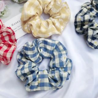 Bộ sản phẩm: Dây buộc tóc Scrunchies caro hoa cúc.