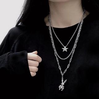 Bộ sản phẩm: Dây Chuyền 3 Lớp Mặt Hình Thỏ Phong Cách Hip Hop Hàn Quốc.