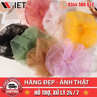 [SALE SỐC ] Dây Cột Tóc Scrunchies Vải Voan Kính Thanh Lịch Thời Trang ⚡ GIỚI THIỆU SẢN PHẨM: ✔ Loại sản phẩm: Dây cột tóc ✔ Phong cách: thời trang, ngọt ngào, thanh lịch ✔ Chất liệu: Vải Phi Bóng ✔ Màu sắc: Như hình hiển thị ✔ Dành cho: Mọi lứa tuổi ✔ Dành cho các dịp: Mọi dịp đều được sử dụng rộng rãi, thích hợp sử dụng làm quà tặng. Ngoài để cột tóc thông thường còn có thể sử dụng như một loại phụ kiện đeo tay trang trí. ⚡ LƯU Ý: ✔ Do màn hình khác nhau và hiệu ứng ánh sáng, màu sắc thực tế sản phẩm sẽ hơi có sự khác biệt nhỏ so với hình ảnh hiển thị ✔ Khi Đặt hàng bạn vui lòng chọn đúng phân loại mà bạn muốn mua. Shop mình set kho chuẩn nên sẽ không đóng hàng theo inbox/ghi chú/lưu ý. Chỉ đóng hàng theo phiếu in trên hệ thống (Đơn in hàng lọat nên sẽ không đọc được lưu ý của bạn) ✔ Mọi thắc mắc vui lòng liên hệ tổng dài 19001221 để giải quyết thắc mắc ạTHÔNG SỐ KĨ THUẬT