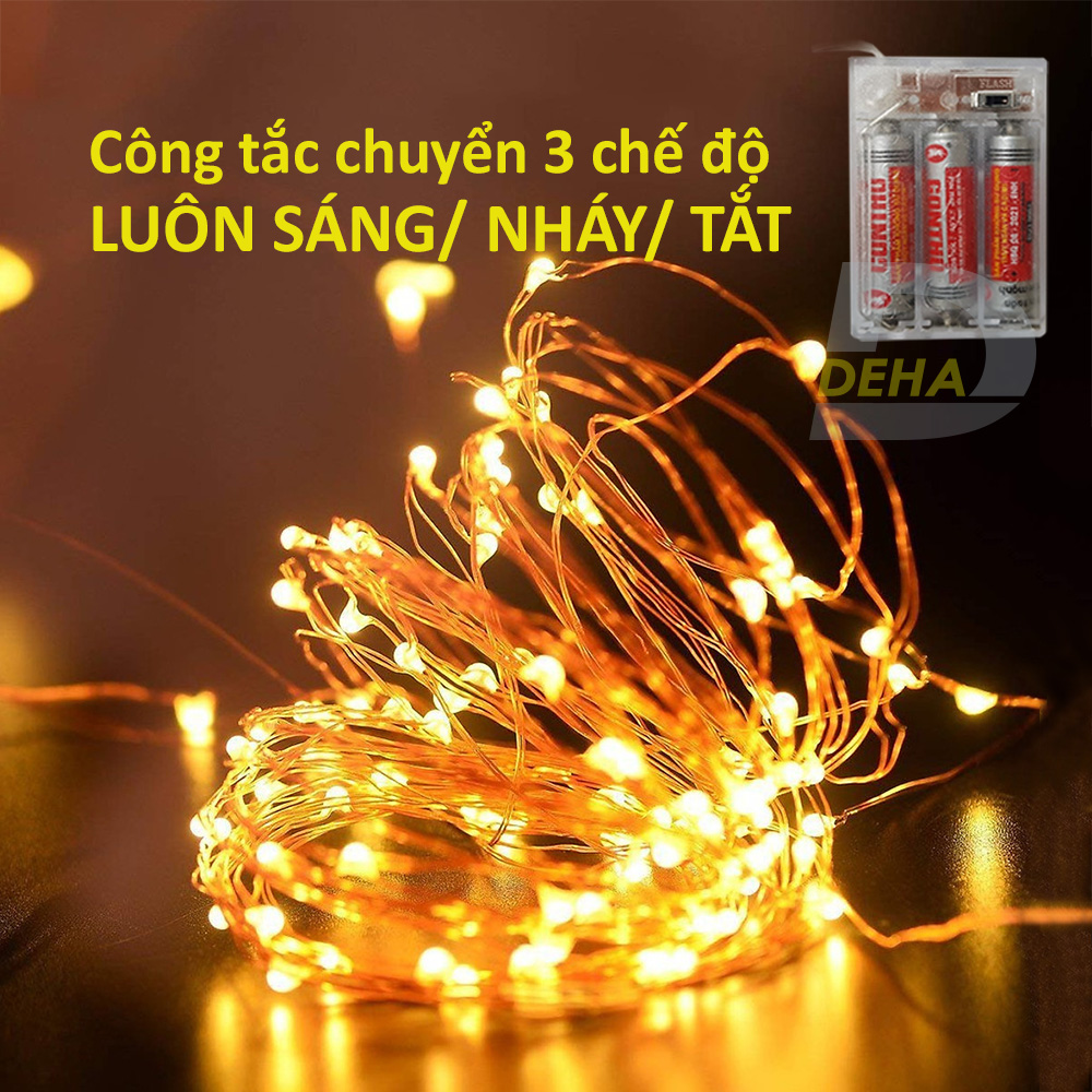 Bộ sản phẩm Dây đèn nháy Led đom đóm trang trí pin 10M/5M/2M Vàng nắng/ Nhiều màu, dây bóng đèn nháy cao cấp decor nhà cửa, lễ tết, lều trại du lịch cao cấp, bền đẹp, tinh tế, sang trọng – Chính hãng DEHA Thương hiệu: DEHA.