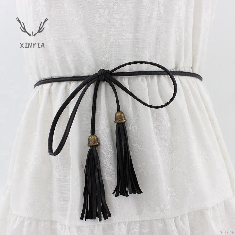 Bộ sản phẩm: Dây thắt lưng da PU thiết kế phối tua rua nữ tính độc đáo.