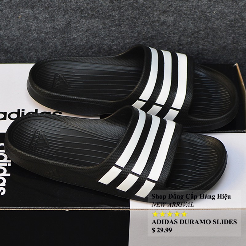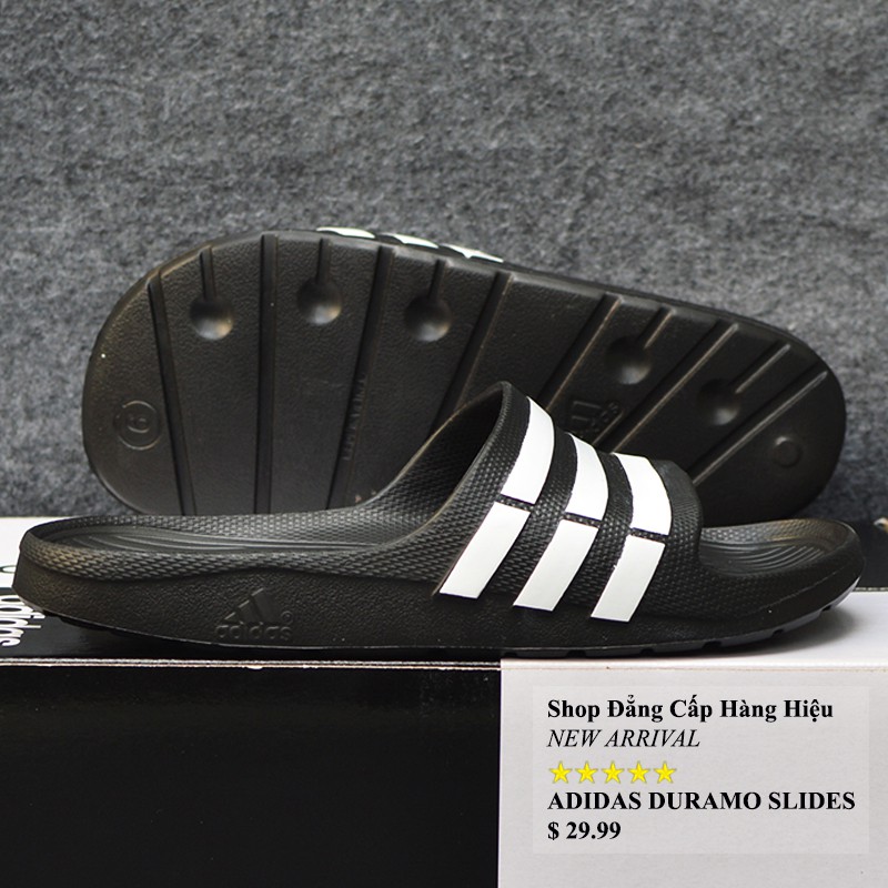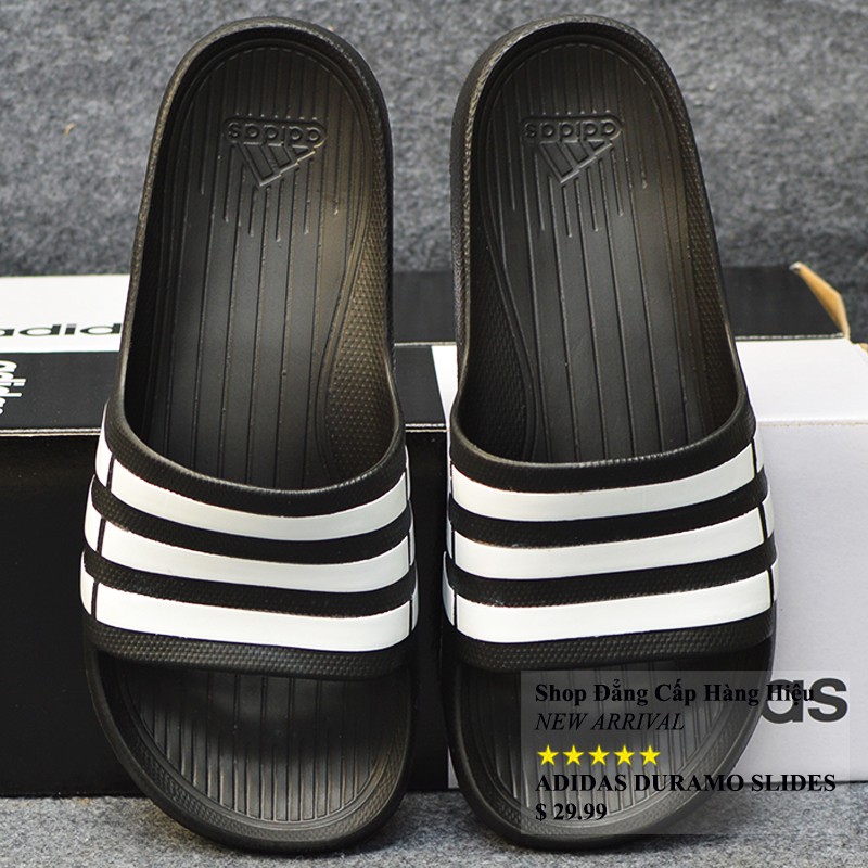 Bộ sản phẩm: Dép Adidas Duramo chính hãng màu đen sọc trắng.