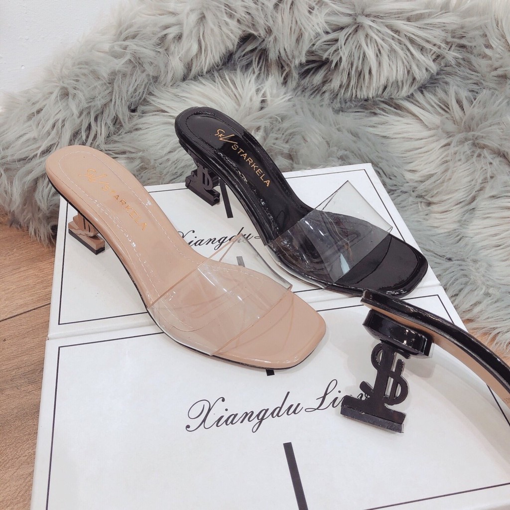 Bộ sản phẩm: Dép cao gót 6 phân gót chữ S quai trong mẫu mới.
