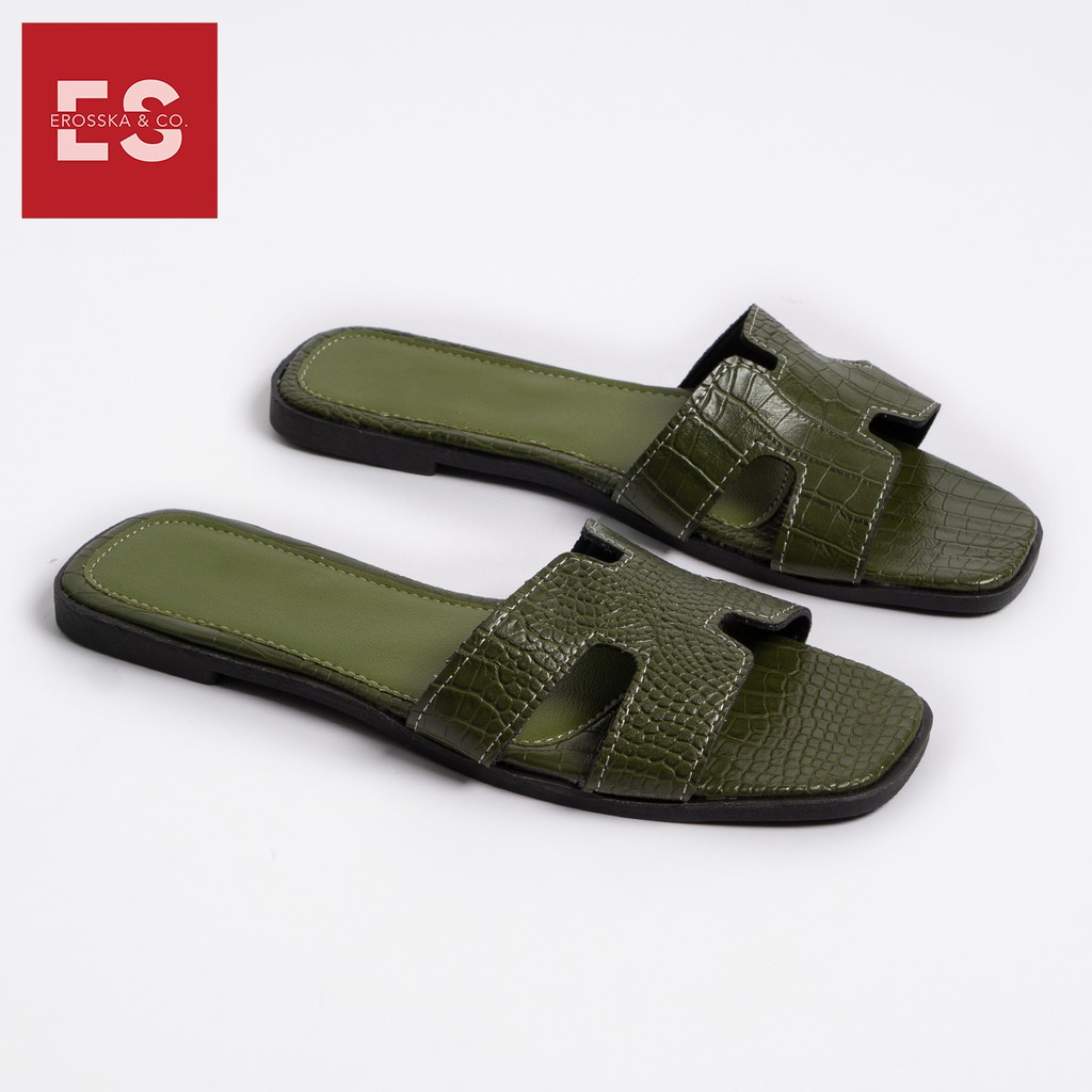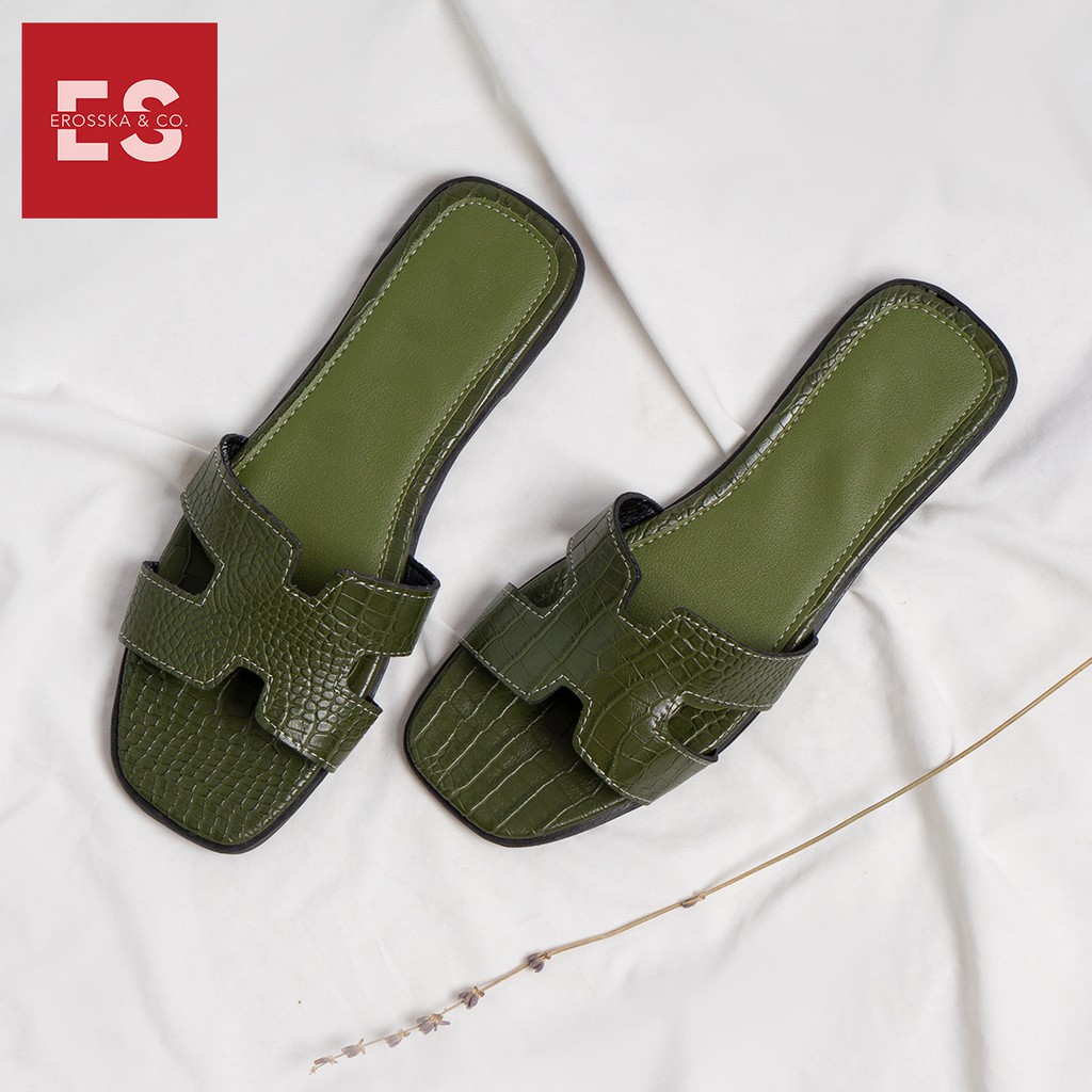 Bộ sản phẩm: Dép chữ H da cá sấu thời trang Erosska mẫu mới mũi vuông màu xanh.