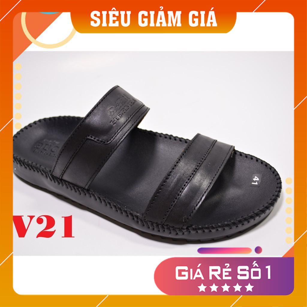 Bộ sản phẩm: Dép Da Bò Quai Ngang May Viền Siêu Bền Cao Cấp V21.