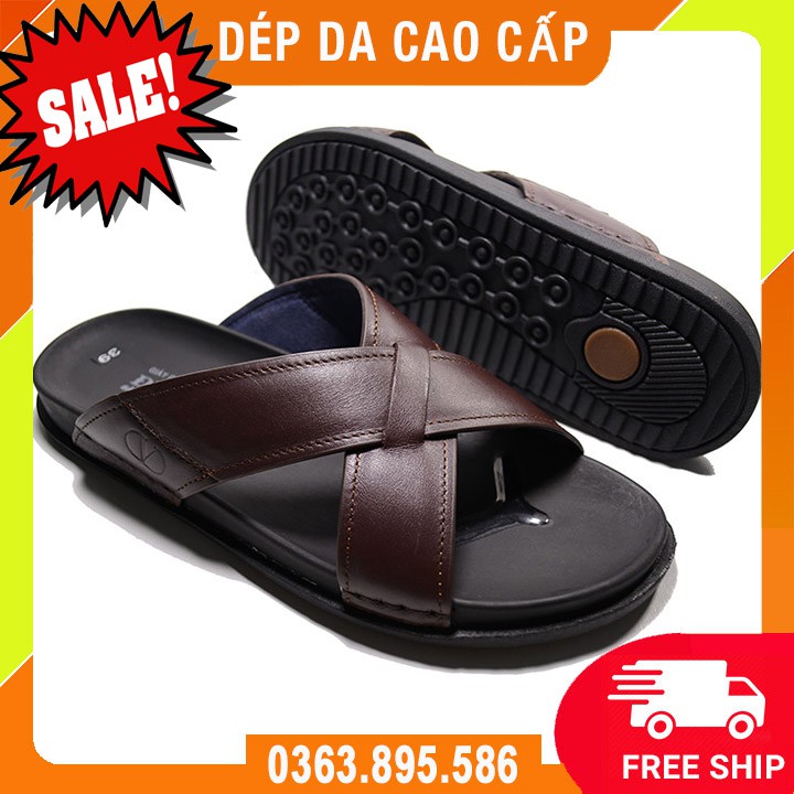 Bộ sản phẩm: Dép Da Nam Cao Cấp Da Bò Quai Ngang – Hàng loại 1.