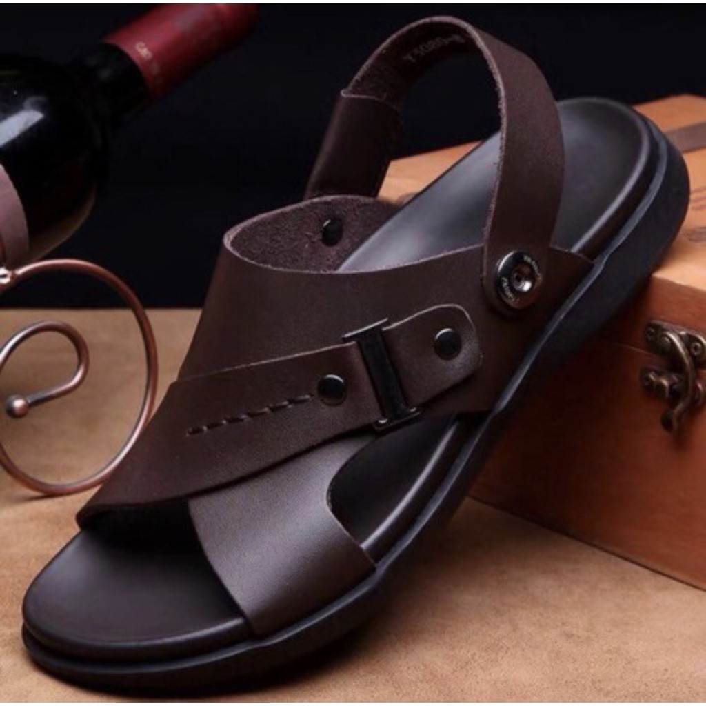 Bộ sản phẩm: Dép da nam da bòđế cao su, được khâu chắc chắn, Chống nước, chống trơn trượt.