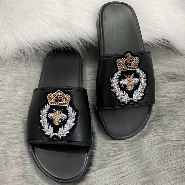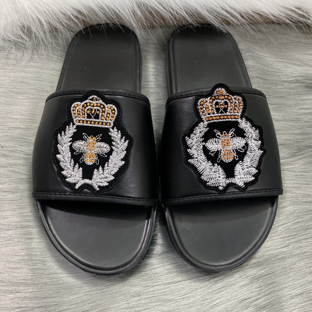 Bộ sản phẩm: Dép da nam đế hộp hàng xịn ảnh thật (đế hộp thêu ong hoa trắng).
