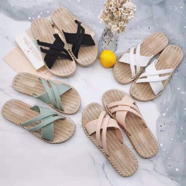 Bộ sản phẩm: Dép đi biển nhựa giả cói siêu xinh.