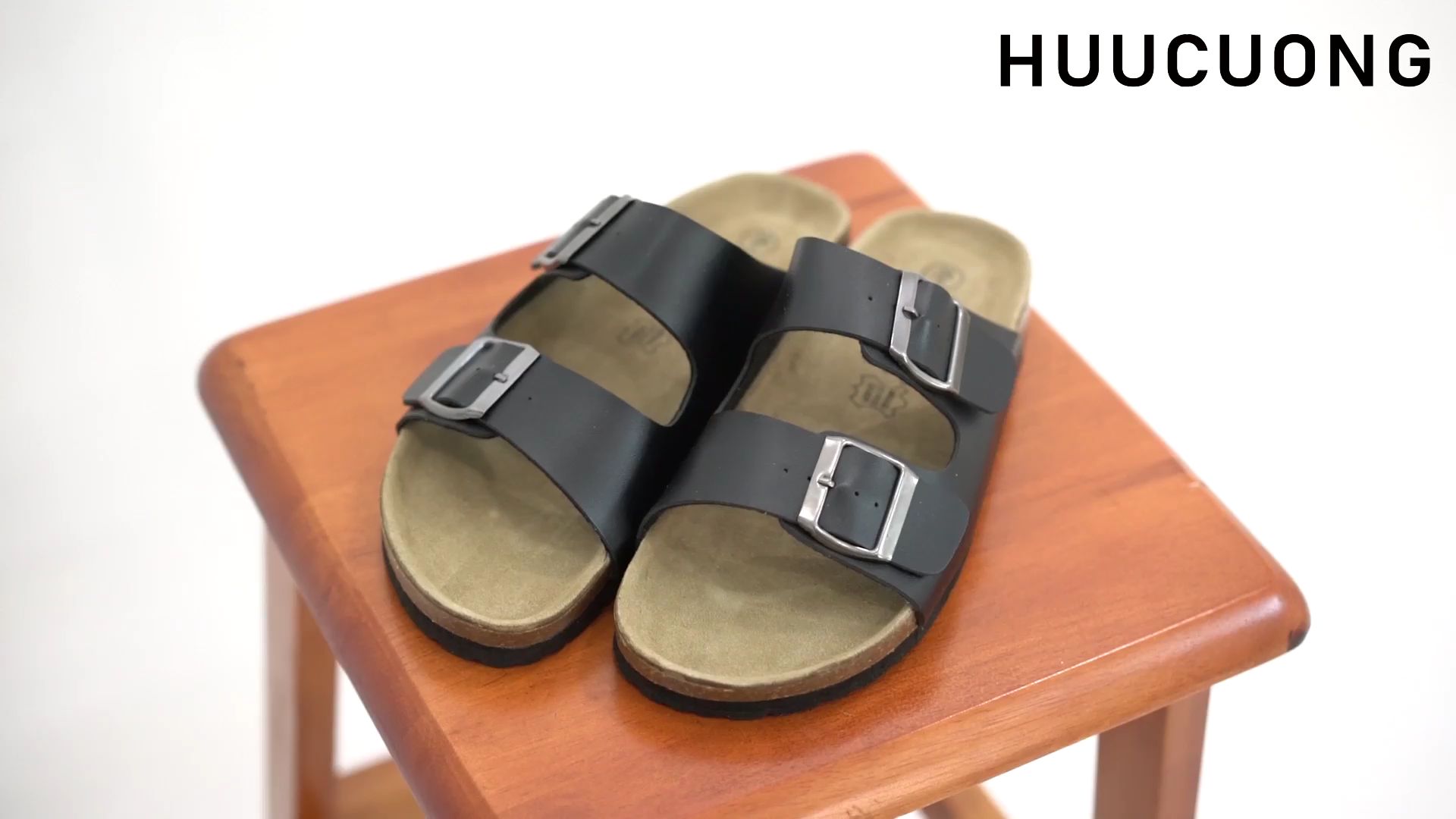 Bộ sản phẩm: Dép HUUCUONG 2 khóa đen đế trấu.