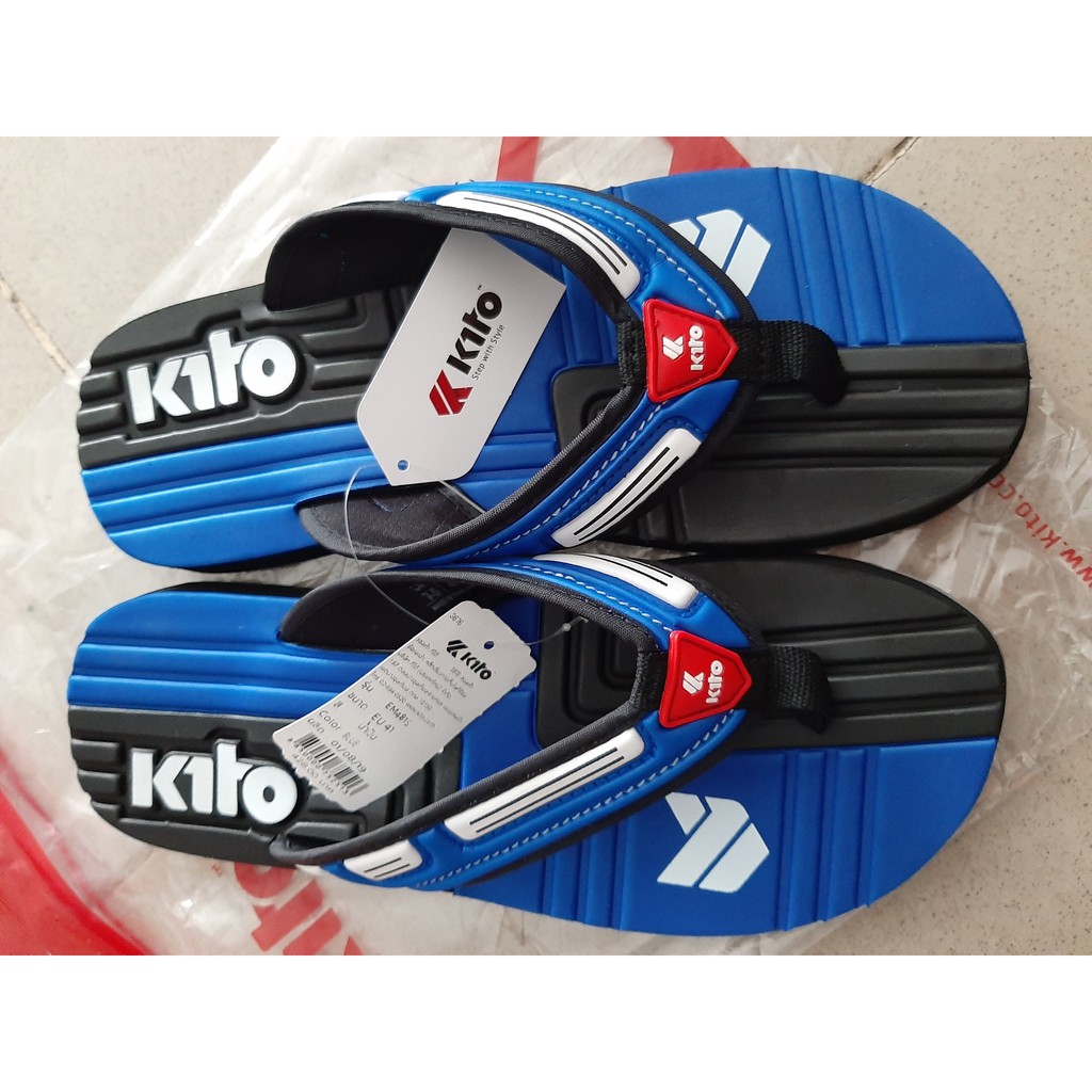 Sang trọng và tinh tế cùng chất lượng cao cấp, thương hiệu giày dép nổi tiếng của Thái Lan, Kito đã luôn khẳng định tên tuổi của mình bằng chất lượng cũng như thiết kế thời trang mang phong cách hiện đại. Các nhà thiết kế của kito luôn thấu hiểu nhu cầu khách hàng và xu hướng thời trang để tạo ra những sản phẩm giày dép mang đến sự hoàn hảo.Kito Thái Lan đã và đang khẳng định tên tuổi của mình trong nước cũng như trên trường quốc tế. Size 40 41 42 43 Quai vải, đế trên là sốp mềm, mặt dưới là cao su có chữ KITO (Lưu ý: Màu đen mặt dưới không có chữ Kito nổi)