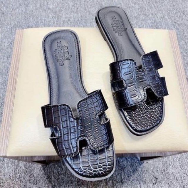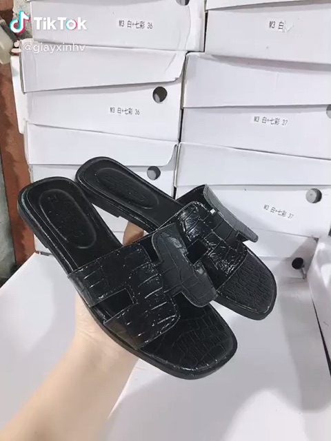 Bộ sản phẩm: Dép lê / dép nữ chữ H da rắn.