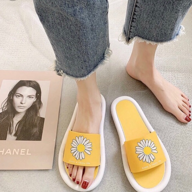 Bộ sản phẩm: Dép nữ hoa cúc vàng.