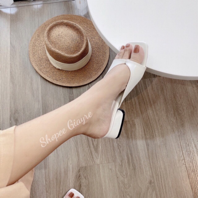 Bộ sản phẩm: Dép quai kẹp xỏ da mềm xinh xắn gót 2cm.