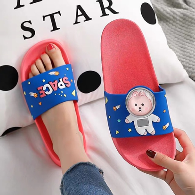 Bộ sản phẩm: Dép Quai Ngang Gấu Brown Thỏ Cony Siêu Cute Cao Su Non Unisex.