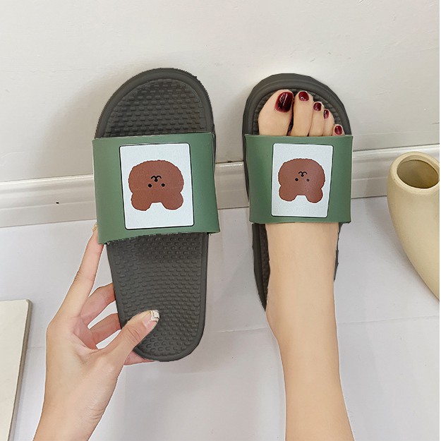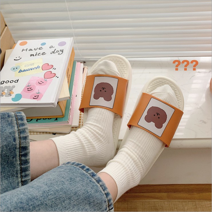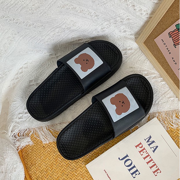 Bộ sản phẩm: Dép quai ngang in hình gấu ulzzang.