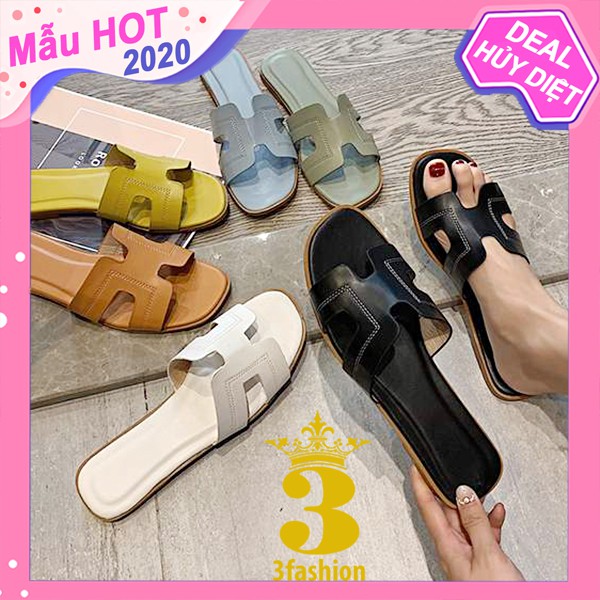 Bộ sản phẩm: Dép Thời Trang Nữ 3Fashion Da PU Cao Cấp Quai Ngang Chữ H Lót Dép Mềm.