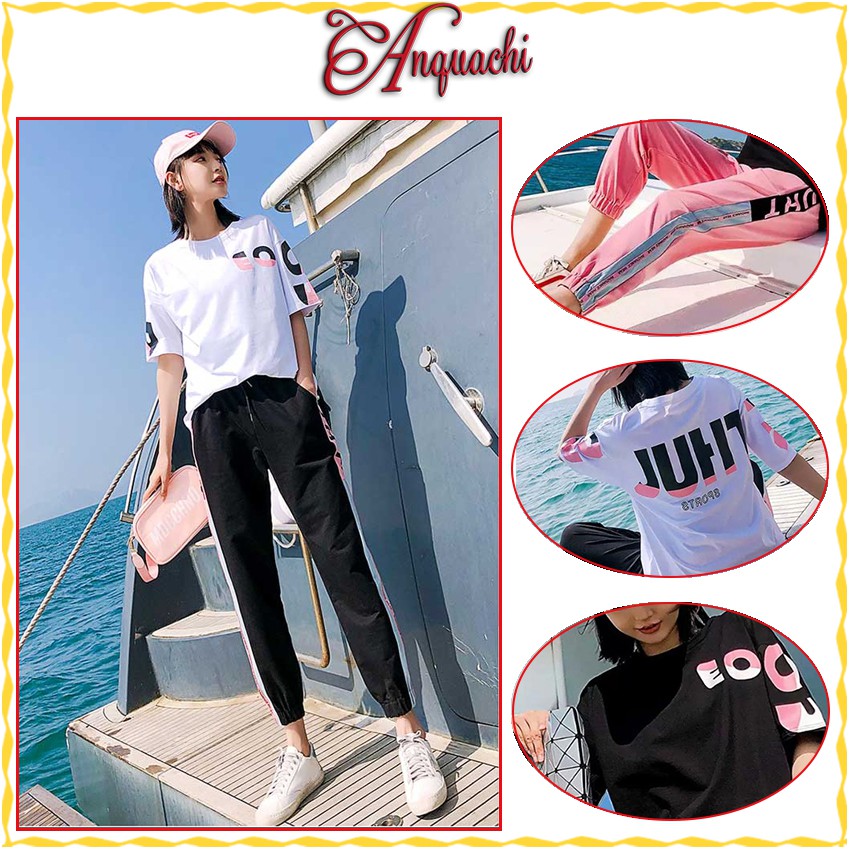 Bộ sản phẩm: Đồ bộ thể thao nữ mùa hè năng động chất thun cotton co giản thoải mái – 2 tông màu.