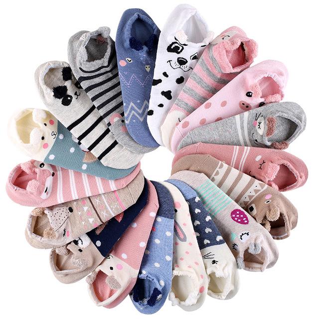 Bộ sản phẩm: Đôi vớ ngắn cotton phối họa tiết các con vật xinh xắn dành cho nữ.