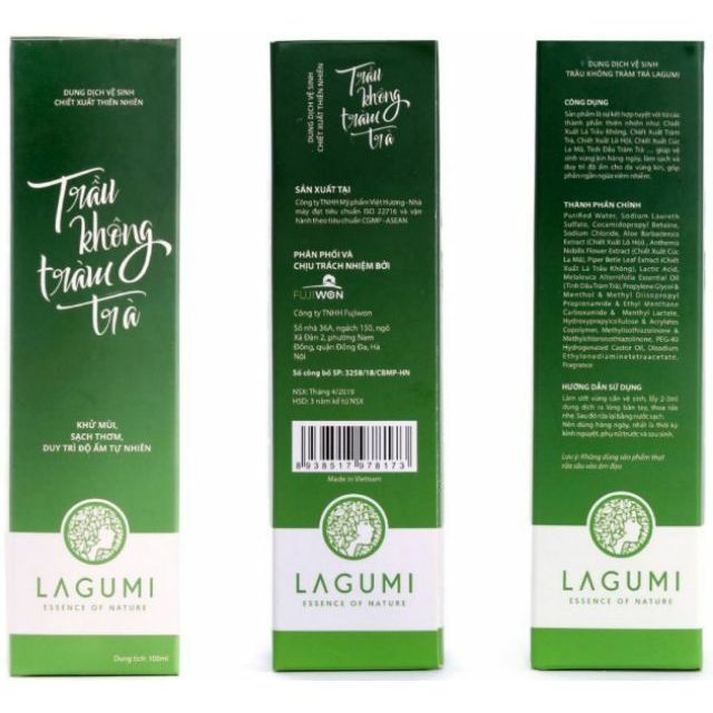 SẢN PHẨM CÓ THỂ TRẢ GIÁ XUỐNG 220K/CHAI Dung tích : 100 ml Thương hiệu : Lagumi Xuất xứ : Việt Nam. Ngày sản xuất:05/2020 Hạn dùng 03 năm sau ngày sản xuất ĐỐI TƯỢNG SỬ DỤNG – Dùng để vệ sinh vùng kín hàng ngày cho cả nam và nữ. – Dùng được cho mẹ mang thai, mẹ sau sinh và đang cho con bú. – An toàn sử dụng được cho cả Mẹ Bầu —- Công dụng chính : Giúp làm sạch dịu nhẹ, ổn định pH tự nhiên cho vùng da nhạy cảm. – Ngăn ngừa vi khuẩn có hại xâm nhập vùng kín. – Khử mùi và chống ngứa ngáy suốt 24h, mang lại cảm giác dễ chịu cho người sử dụng. – Dưỡng ẩm, làm hồng, mềm mại và trẻ hóa vùng kín. – Hỗ trợ chống viêm nhiễm và ngăn ngừa các bệnh phụ khoa hiệu quả. —- Dung dịch vệ sinh là một trong những sản phẩm thiết yếu nhất của chị em trong việc chăm sóc vùng kín. Thành phần dung dịch vệ sinh Trầu không Tràm trà Lagumi có an toàn ? Ngay từ tên gọi của sản phẩm đã thể hiện 2 thành phần chủ đạo nhất của sản phẩm: Trầu không và Tràm trà, đây là 2 loại thảo dược mà người xưa hay dùng để vệ sinh vùng kín, rất lành tính và an toàn ngay cả với các mẹ đang mang bầu. Theo y học hiện đại, trong lá trầu không và lá tràm trà các các hoạt chất quý hiếm như chavicol, chavibetol, Gamma-terpinene, … có tác dụng như một chất kháng sinh cực mạnh đối với nhiều loại vi khuẩn gây viêm nhiễm vùng kín. Như vậy, không chỉ là một sản phẩm vệ sinh thông thường, Dung dịch vệ sinh Trầu không Tràm trà còn có tác dụng hỗ trợ điều trị các bệnh phụ khoa hiệu quả. Đang mang thai có sử dụng được không ? Sản phẩm rất lành tính và thân thiện với các mẹ đang mang thai, không chứa Paraben, không gây kích ứng da do không chứa xà phòng và các chất tẩy rửa, thành phần thảo dược tự nhiên cực kỳ an toàn với bà bầu. Sử dụng dung dịch vệ sinh Trầu không Tràm trà Lagumi có sạch không, có gây cảm giác khô rít? Dung dịch vệ sinh Trầu không Tràm trà Lagumi có độ pH chuẩn 4.5 rất dịu nhẹ, phù hợp với độ pH tự nhiên của cơ thể. Hơn nữa, làm sạch sâu nhưng lại dịu nhẹ vô cùng, vì trong dung dịch vệ sinh chứa các tinh chất làm mềm, dưỡng và trẻ hoá vùng kín, như tinh chất hoa hồng, tinh chất cúc La Mã, tinh chất Trà xanh, …. Ngoài ra sản phẩm còn mang mùi thơm tự nhiên của hoa nhài, giúp chị em luôn thơm mát, sạch sẽ cả ngày. LƯU Ý – Chỉ nên sử dụng sản phẩm 1-2 lần/ngày. Không nên dùng quá nhiều lần trong ngày. – Sản phẩm dung dịch vệ sinh Lagumi Trầu không – Tràm trà là sản phẩm hỗ trợ chống viêm nhiễm phụ khoa dùng vệ sinh ngoài da, không phải dạng dùng để đặt bên trong âm đạo hoặc sản phẩm dạng xịt. – Chỉ sử dụng sản phẩm khi còn hạn sử dụng. – Để sản phẩm tránh xa tầm tay của trẻ em.