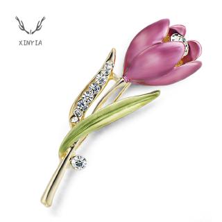 Bộ sản phẩm: Ghim cài áo đính đá hình hoa tulip thời trang.