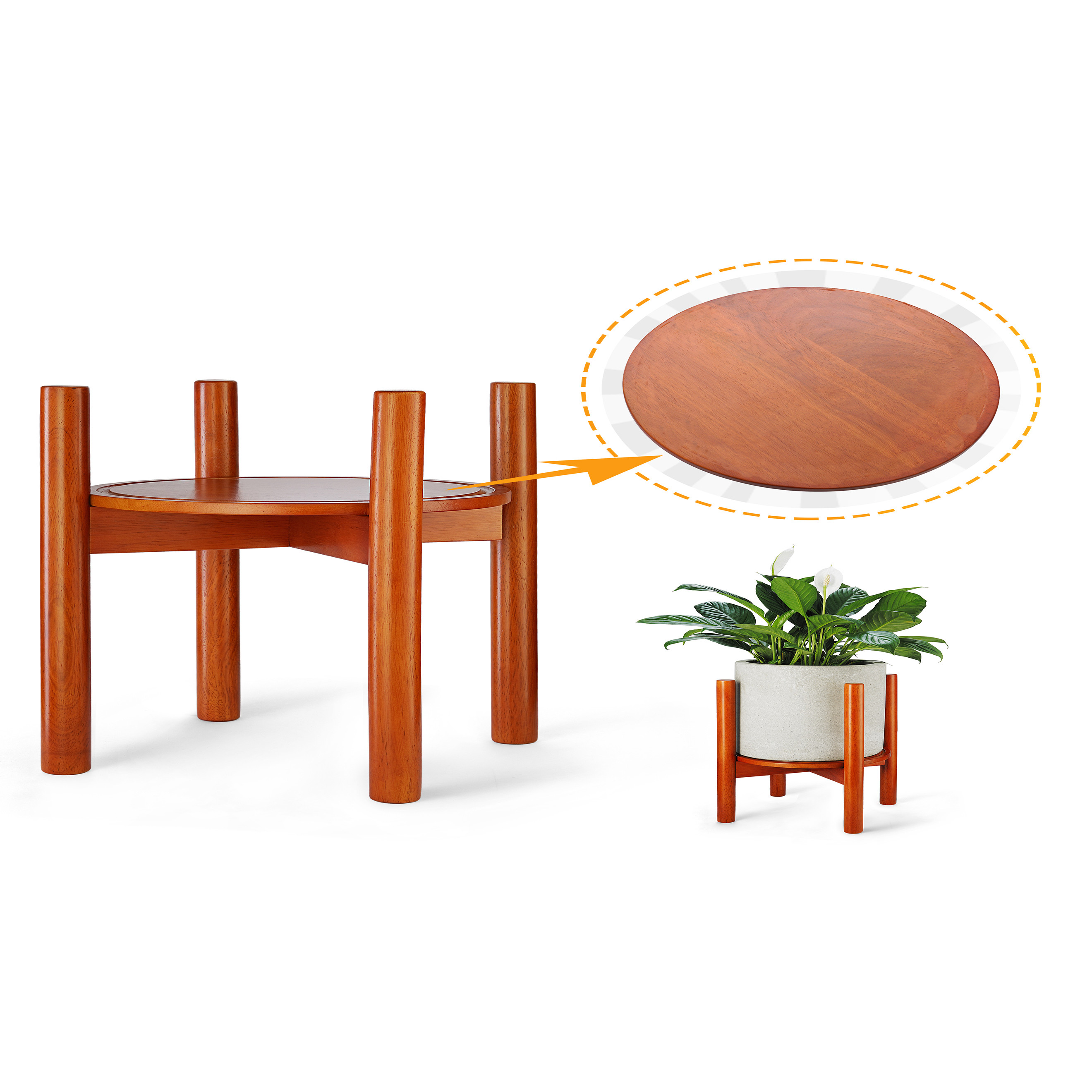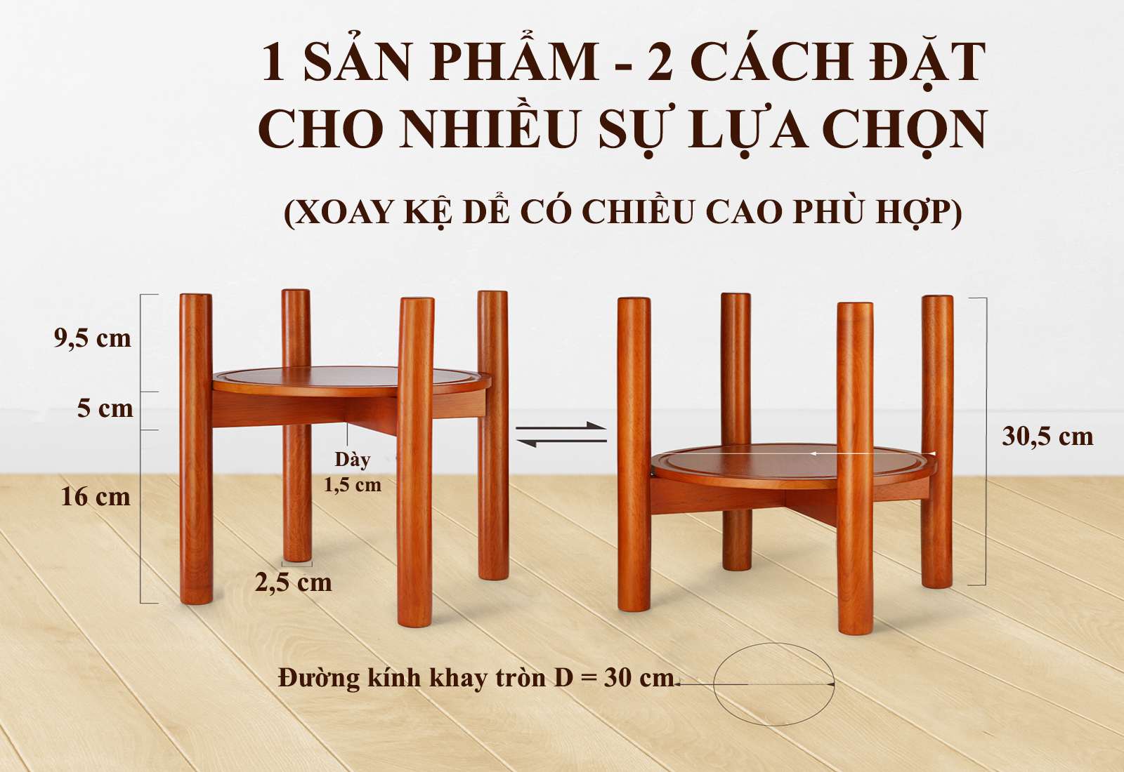 Trang trí góc nhà của bạn thêm thu hút ánh nhìn. Có khay giúp để chậu cân bằng hơn và hạn chế nước tràn. Phong cách Mid-Century. 100% từ gỗ cao su thiên nhiên. Lắp đặt dễ dàng. Thiết kế nhỏ gọn, dễ dàng mang đi. Được phủ lớp dầu chống thấm, chống mốc nhưng không gây ảnh hưởng tới sức khỏe người và thú cưng. Giá đỡ cây không chỉ giúp những chậu hoa yêu thích của bạn ở nơi cao hơn dễ dàng đón nắng mà còn trang trí góc nhà của bạn thêm thu hút ánh nhìn. Đặt biệt, khay giúp để chậu cân bằng hơn và giúp hạn chế nước không tràn ra khi bạn tưới cây. Chân đế gỗ của bảo vệ sàn nhà khỏi bị hư hại hoặc dơ do nước của cây thoát ra. Lấy cảm hứng từ những năm 1950, phong cách Mid-Century mô tả các đường nét đơn giản và sạch sẽ, các đường cong hữu cơ nhẹ nhàng, một tình yêu cho các vật liệu khác nhau. VẬT LIỆU: làm bằng gỗ cao su 100% – có thể cho phép trọng lượng lên tới 80kg. Tại sao chúng ta chọn gỗ cao su: Độ bền: Gỗ cao su có độ bền cao, chắc chắn, dẻo dai và đàn hồi. Gỗ cao su là loại gỗ cực kỳ chắc chắn để đảm bảo nó không bị vỡ hoặc phai màu khi ở ngoài ban công hoặc vườn. Bên cạnh đó, nó có lớp sơn PU chống nước và chống ẩm. DỄ DÀNG LẮP ĐẶT: Đầu tiên, để đứng 2 phần chân gỗ và chèn thanh chéo vào rãnh, sau đó vặn ốc vít vào lỗ, cuối cùng thắt chặt nó lại và đặt khay giữ nước lên. KHÔNG BAO GỒM CHẬU VÀ CÂY. XIN LƯU Ý: Có một chút khác biệt giữa vật phẩm và hình ảnh. Do tính chất của gỗ, mỗi vật phẩm sẽ có những đặc điểm và vết sẹo riêng. Tất cả các mục là điều kiện mới.