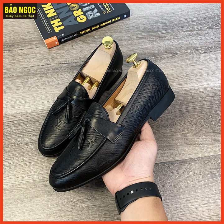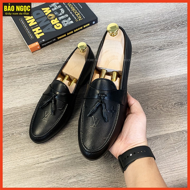 Bộ sản phẩm: GIÀY LƯỜI NAM BĂNG CHUÔNG DẬP VÂN LV – CHẤT LIỆU DA BÒ 100%.