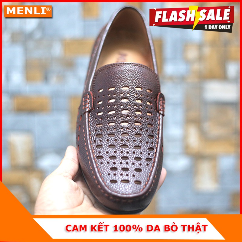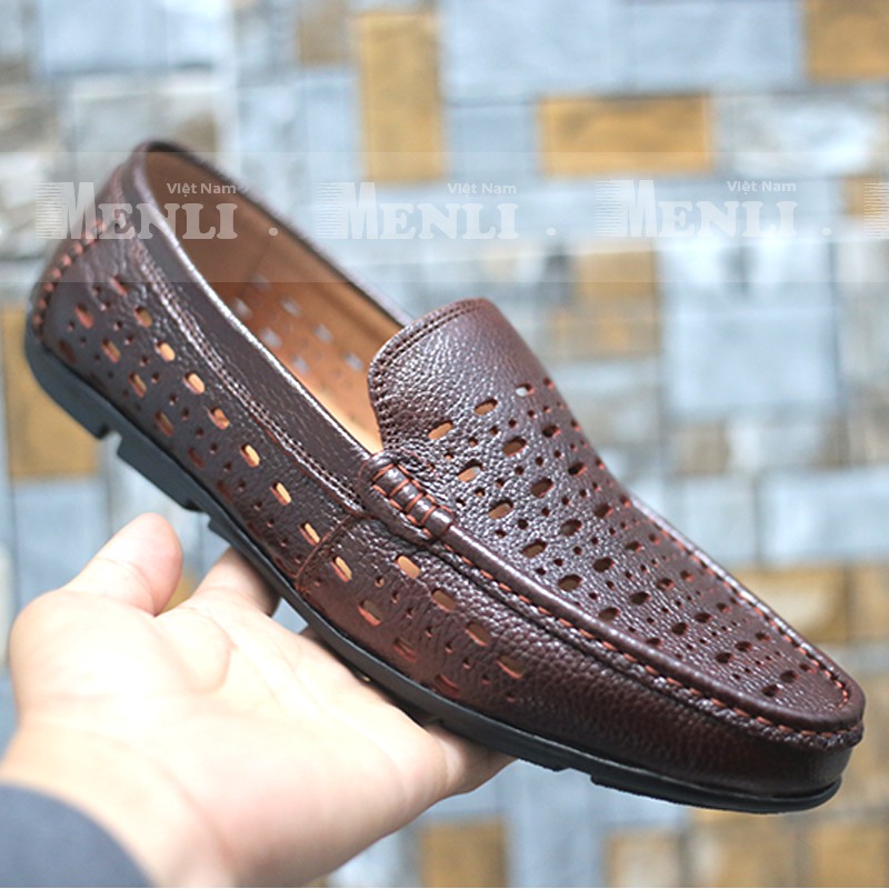 Bộ sản phẩm: Giày lười nam da bò thật MENLI GLSP161 đục lỗ thoáng khí.