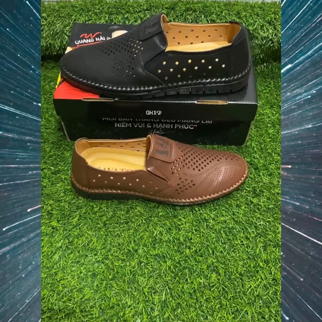 Bộ sản phẩm: Giày lười nam mùa hè da bò nguyên tấm bảo hành chất lượng 1 năm Gh018.