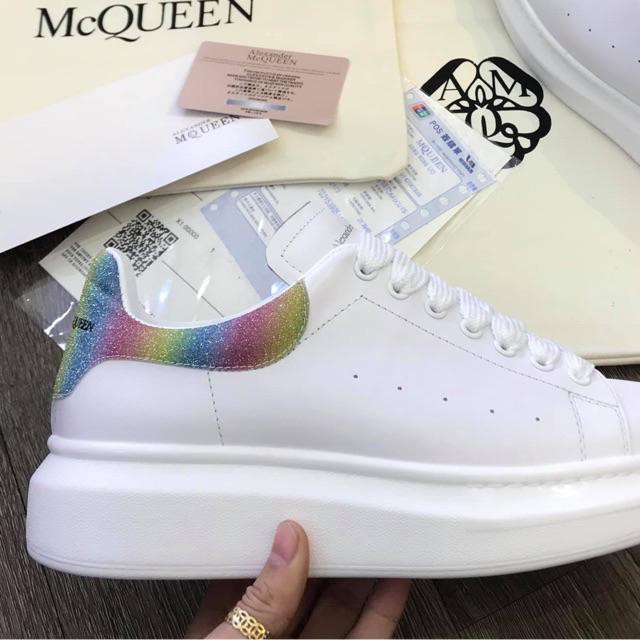 Bộ sản phẩm: Giầy mcq trắng gót cầu vồng hàng 1:1(full box +).