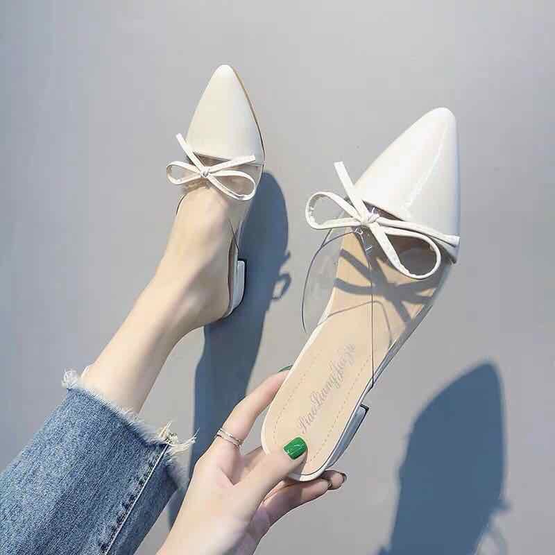 Bộ sản phẩm: Giày mũi nhọn phối mica thắt nơ xinh – A8.