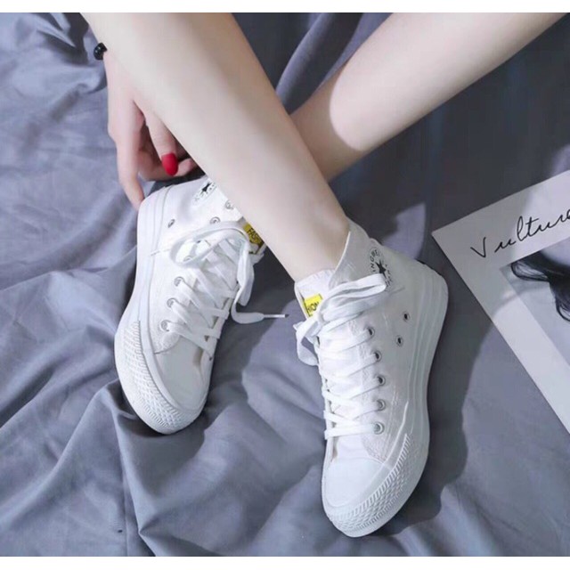 (*) THÔNG TIN SẢN PHẨM ✦ Giày thể thao, Giày sneaker nữ đẹp phù hợp cho các nàng dịu dàng và cá tính. ✧ Chất liệu được làm từ Da và Cao su . ★ Size: 35-36-37-38-39 CHUẨN LỰA CHỌN SIZE PHÙ HỢP : Chiều dài bàn chân Size số : 22 đến 22.5 cm 35 22.5 đến 23 cm 36 23 đến 23.5 cm 37 23.5 đến 24 cm 38 24 đến 24.5 cm 39 ✧ Chức năng: Đế độn Tăng chiều cao 5 phân, giảm sốc, thoáng khí êm chân. ★ Style: Hàn Quốc ✧ Thời trang: Giày Đi học, Đi chơi, Du lịch, Dự tiệc, Dạo phố…. ★ Gợi ý phối đồ Style Cho các nàng Dịu dàng: => Giày / Chân váy ngắn / áo sơ mi / túi ✧ Gợi ý phối đồ Style Cho các nàng Cá Tính: => Giày / Quần Jeans ngắn / áo phông form dài / túi / Kính mát ★ Hàng nhập khẩu —————————————————- (*) ƯU ĐÃI HOT CHO KHÁCH HÀNG: ✸ Miễn phí vận chuyển cho đơn hàng từ 250k trở lên ✸ Nhận ngay ưu đãi giảm 10% cho lần mua tiếp theo khi Khách đã mua hàng và có đánh giá cho sản phẩm —————————————————- (*) CAM KẾT & QUY ĐỊNH KHI MUA HÀNG TẠI SHOP + Cam kết về chất lượng sản phẩm mới 100% + Cam kết hàng hóa y ảnh và đúng mô tả + Lỗi đổi mới (Đổi trả hàng, hoàn tiền theo quy định của shopee) + THỜI GIAN GIAO NHẬN HÀNG : Ship COD toàn quốc từ 3-5 ngày, Thời gian ship có thể nhanh hơn với những khách hàng ở Hà Nội —————————————————- (*) THÔNG TIN LIÊN HỆ Địa chỉ: Văn Phú – Hà Đông – Hà Nội ✪ Hotline: 0974.55.44.23 —————————————————- (*) CẢM ƠN BẠN ĐÃ THAM QUAN & MUA SẮM TẠI SHOP —————————————————- :heart: TAG: #giaythethaonu #giaynu #giaysneakernu #thethaohanquoc #sneakerhanquoc #giaynuthoitrang #giaydaopho #giày_thể_thao_nữ #giày_sneaker #giày_nữ #giày_nữ #giày_đế_cao, #giày_da_lộn, #giày_thể_thao #giày_chạy #giày_thời_trang #giày_cao_5cm #giày_converse_cổ_cao #giày_thể_thao_đế_cao #giày_thể_thao_nữ #giày_trắng #giày_dép_nữ #dép_nữ_đẹp #giày_sục_nữ #giày_nữ_đế_bằng #giày_vải_nữ #boot_nữ #giày_nữ_công_sở #giày_cao_cấp #giày_cao_gót #giày_nữ_giá_rẻ #giày_nữ_sneaker #giày_sneaker_nữ, #giay_tăng_chiều_cao