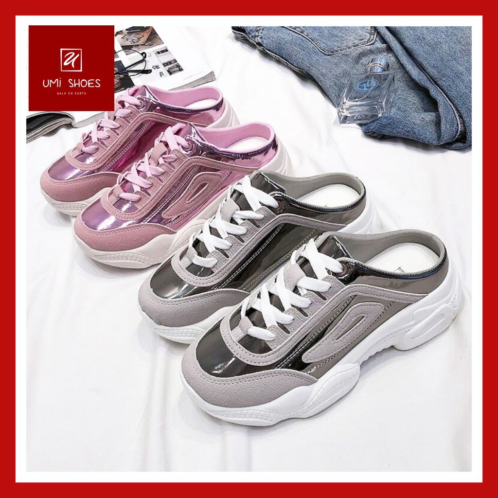 Bộ sản phẩm: Giày sục thể thao nữ năng động độn đế cao 5cm màu bạc ánh da mềm.