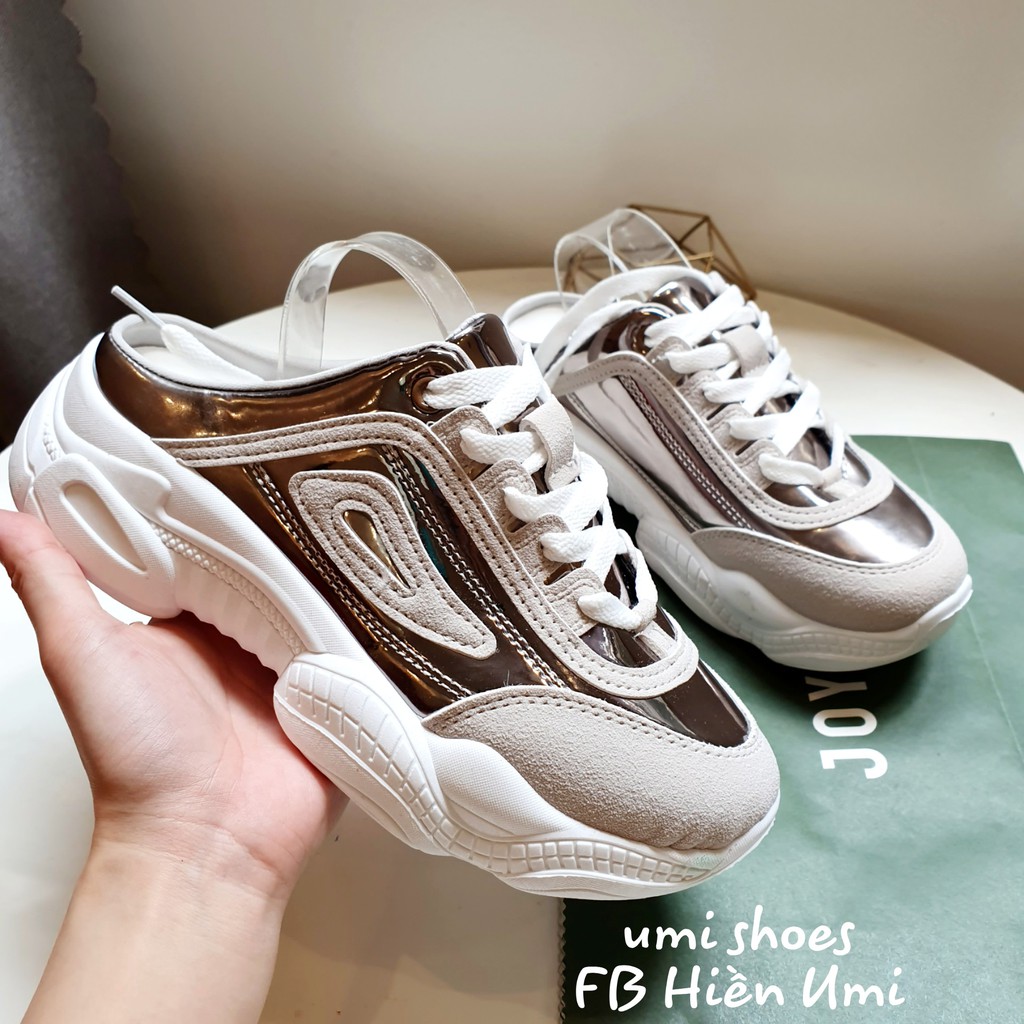 Chi tiết các thông sỗ kĩ thuật kèm hình ảnh của bộ sản phẩm Giày sục thể thao nữ năng động độn đế cao 5cm màu bạc ánh da mềm, quý khách xem dưới đây:
