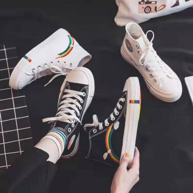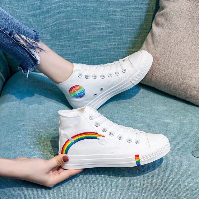 Giầy thể thao cao cổ Viền cầu vồng thêu là sản phẩm đang được săn đón nhiều nhất trên thị trường trong nước và quốc tế. Bộ sản phẩm có giá chỉ ₫69.000 – ₫100.000 đã được bán ra hơn 1,2k đi kèm với 695 lượt yêu thích, cùng với đó là 420 lượt review, đánh giá, nhận xét về sản phẩm. Thông tin chi tiết bộ sản phẩm, quý khách vui lòng xem sau đây.